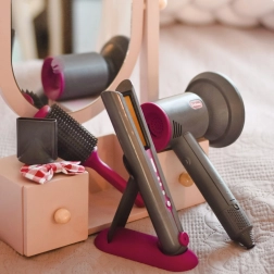 Uz ovaj realistični frizerski set djeca se lako pretvaraju u male profesionalce. Sušilo doista puše zrak, a pegla pri zatvaranju reproducira zvuk i treperi crvenom LED diodom, pa je igra uvjerljiva i zabavna. Sve je izrađeno od materijala sigurnih za djecu i prilagođeno malim rukama.