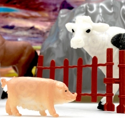 - figurice domaćih životinja, ograda, stijene, biljke, podloga za igru, tematska karta, spremna kanta/kutija