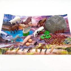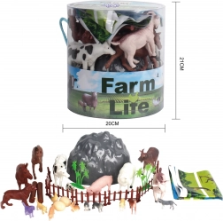- Kompletan set od 34 dijela – figurice domaćih životinja, ograda, kamenje, biljke i podloga za igru.