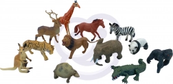 - 12 kom (klokan, tigar, žirafa, lav, kornjača, slon, krokodil, gorila, panda, zebra, konj, jelen)