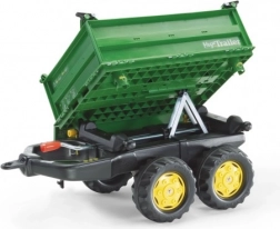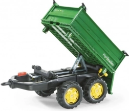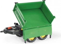 Rolly Toys prikolica je stabilna dvoosovinska kiperska prikolica koja se može kipati na tri strane. Ova zelena prikolica opremljena je robusnim kotačima, što omogućuje jednostavan prijevoz tereta. Kompatibilna je sa svim vozilima Rolly Toys, s izuzetkom modela rollyKids i RollyDumperKid.
