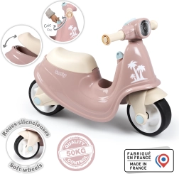 Ružičasti skuter od renomiranog brenda Smoby je šarmantno retro vozilo na dva kotača, idealno za malu djecu. Ovo je razvojna igračka koja potiče ravnotežu, snagu i kondiciju djeteta.