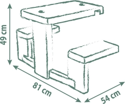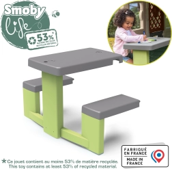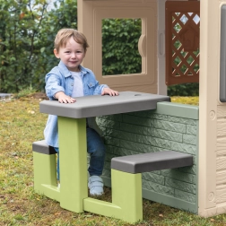 Piknik stolić s klupama idealan je dodatak za dječje kućice poput Neo Jura Lodge, My New House, Chef House i Evo Friends House. Dizajniran je kako bi djeci pružio udobno mjesto za igru i odmor.