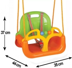 Ljuljačka 3u1 izvrstan je izbor za roditelje koji žele sigurno i dugotrajno rješenje za zabavu u vrtu i interijeru. Zahvaljujući modularnom sustavu lako se može skinuti naslon i prednja ograda za noge, pa sjedalo prilagođavate dobi i vještinama djeteta. Integrirani pojasevi drže malog putnika čvrsto i udobno, dok čvrsti plastični materijali bez oštrih rubova osiguravaju sigurnost i lako čišćenje.