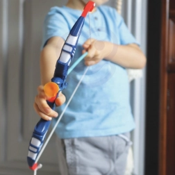 Tri strijele s mekanim vakuumskim vrhovima omogućuju vježbanje preciznosti bez rizika od oštećenja namještaja ili ozljeda. Odlično za igru u kući i na otvorenom.