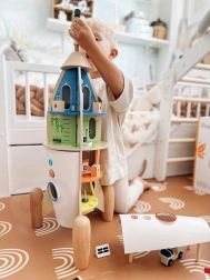 Ova detaljno izrađena raketa skriva čak 12 tematskih prostorija (npr. skladište, operacijska sala ili laboratorij) koje potiču djecu na otvorenu igru i pričanje priča. Zahvaljujući odvojivim sekcijama i interaktivnim dijelovima, djeca uče logiku, strpljenje i suradnju.