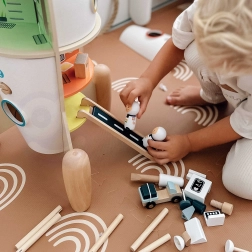 Igračka je pretežno izrađena od drveta, nadopunjena kvalitetnom plastikom i zaštićena netoksičnim lakom. Izdržljiva je, estetski oblikovana i dizajnirana za dugotrajnu igru u dječjoj sobi. Potiče maštu, kreativnost i finu motoriku.