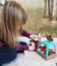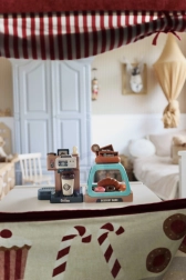 Zahvaljujući mogućnosti modularne upotrebe (spojeno ili odvojeno) set se lako prilagođava prostoru i dječjoj mašti. Bogat pribor s čašama, „kavom”, šećerom, kovanicama i novčanicama potiče komunikaciju, računanje i posluživanje kupaca u sklopu igre.
