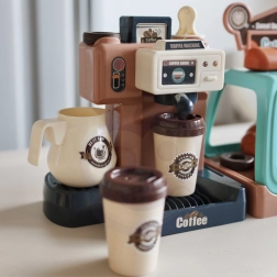 Ulijte vodu u gornji spremnik, montirajte ručicu i promatrajte kako „kava” teče u čašu. Prateći zvukovi i lampice pretvaraju igru u nezaboravan ritual.