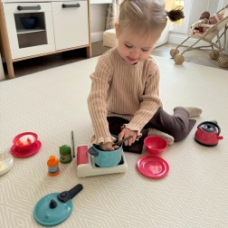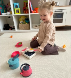 Putem kuhinjskog seta Woopie djeca se mogu uroniti u svijet kulinarskih avantura. Igračka je namijenjena djeci od 3 godine i sadrži razne kuhinjske dodatke poput tanjura, zdjele, čajnika i tave s poklopcem, što osigurava satima zabave. Djeca mogu osmišljavati vlastite recepte i stvarati zamišljena jela, što sjajno potiče razvoj njihove mašte i suradnju tijekom igre s drugom djecom.