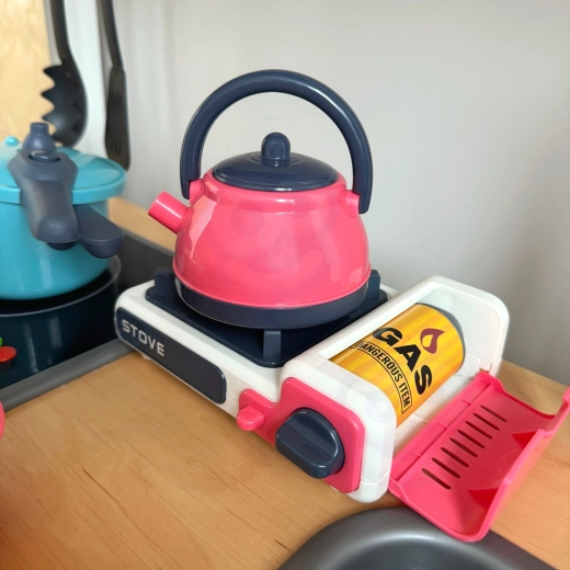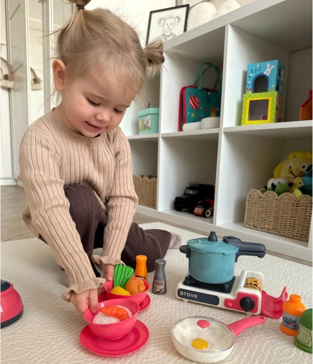 Set je izrađen od sigurnih materijala, a detaljna izvedba stvarnih kuhinjskih alata jamči sigurnost i izdržljivost. Za ovu igračku nisu potrebne baterije, a uz to je kompaktna, što olakšava pohranu.