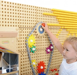 Pretvorite zidnu ploču u interaktivnu radionicu. Ovaj set MASTERKIDZ od 79 dijelova sadrži zupčanike različitih veličina, zupčaste elemente, lanac i montažne dijelove, zahvaljujući kojima djeca lako slažu vlastiti sklop. Pomoću posebnih Masterkidz vijaka pojedine dijelove pričvrste na STEM ploču, zavrte ručkom i promatraju kako se cijeli mehanizam pokreće.