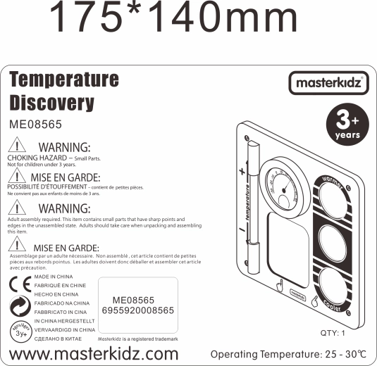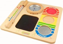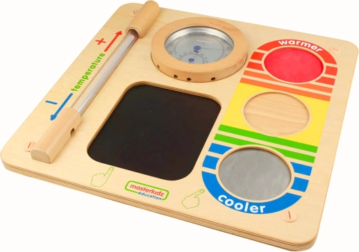 Interaktivna drvena ploča brenda MASTERKIDZ uči djecu razlikovati toplo, neutralno i hladno na siguran i razigran način. Zahvaljujući na toplinu osjetljivoj površini i šarenom termometru, djeca jasno iskušavaju što je toplije, a što hladnije, te bolje razumiju kada se nečega ne treba dirati. Idealno za dom, vrtić i specijalnu pedagogiju, kompatibilno sa sustavom Masterkidz Flex.