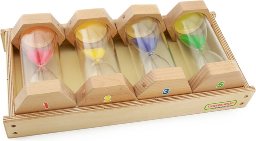 Otkrijte kako je učenje o vremenu zabavno i lako razumljivo! Ovaj set sadrži 4 pješčana sata s različitim bojama pijeska i različitim mjernim intervalima. Djeci pomaže jasno shvatiti kako vrijeme protječe, što su vremenske jedinice i kako ih primjenjivati u praksi. Igrajem do znanja, vizualna preglednost i motivirajući kolorit potiču koncentraciju i radost učenja.