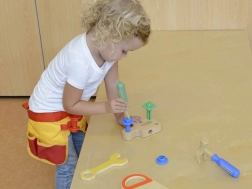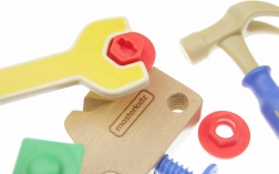 Čekić, ključ, odvijač, vijci i klinovi izrađeni su od kvalitetnog drva, ugodni za držanje i idealni za vježbu fine motorike.