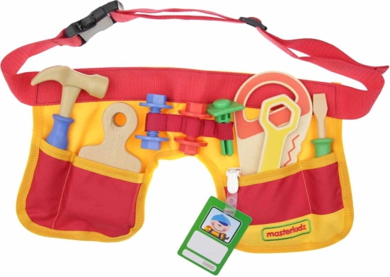 Dječji stolarski pojas MASTERKIDZ osmišljen je za male majstore koji vole oponašati rad odraslih. Podesivi tekstilni pojas u kombinaciji s drvenim alatima omogućuje sigurnu i zabavnu igru koja prirodno razvija vještine i koncentraciju. Zahvaljujući praktičnim džepovima djeca imaju svoje alate uvijek pri ruci.
