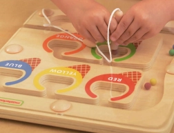 Jasno označene zone boja i kuglice u pet boja potiču djecu na prirodno prepoznavanje i razvrstavanje boja.