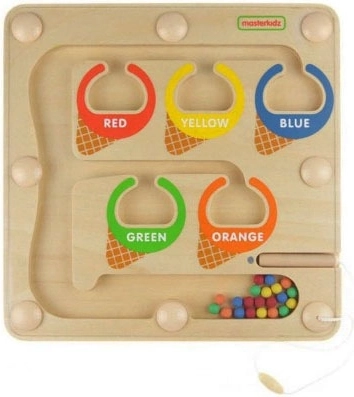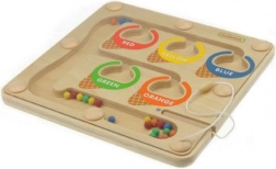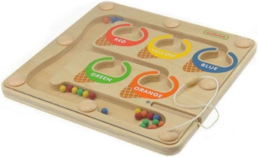 Magnetična edukativna igračka od kvalitetnog drva uči djecu prepoznavati boje i logično ih povezivati. Obične kuglice se pomiču pomoću magnetične olovke u označene zone s jasnim natpisima, pa je učenje intuitivno i zabavno. Kompaktna veličina idealna je za dom, vrtić i putovanja.