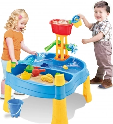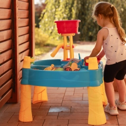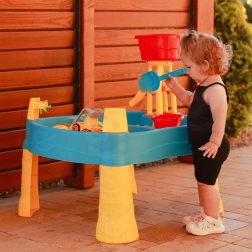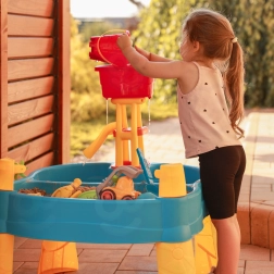 Tražite univerzalan dječji stolić za igru u vašem vrtu, na terasi ili u dječjoj sobi? Ovaj vodeni i pješčani stolić 2u1 nudi odvojene komore za vodu i pijesak, pa djeca mogu grabiti, sipati i lijevati kao na plaži. Vodeni mlin se okreće pri ulijevanju i potiče razumijevanje uzroka i posljedice.