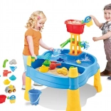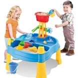 Bogata oprema od 14 dodataka (kalupi, kantica, mlin, lopatica, grabljice, autić i 2 čamčića) razvija maštu, koordinaciju oko–ruka i zajedničku igru više djece. Zahvaljujući stabilnoj plastičnoj konstrukciji stolić je prikladan za vanjsku i unutarnju upotrebu te se lako čisti.