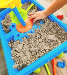 Zahvaljujući dvama odjeljcima, stolić omogućava istovremenu igru s vodom i pijeskom, što nudi raznolike mogućnosti zabave.