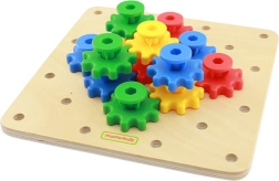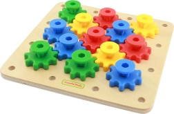 Drvena ploča ima otvore u koje se umeću klinovi koji drže zupčanike. Zupčanike se može postaviti u nizovima kako bi se međusobno pokretali. Zabava je vrlo kreativna i djeci će biti zanimljiva satima.