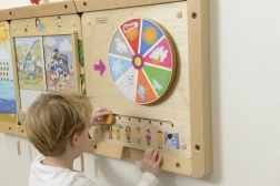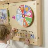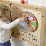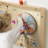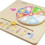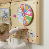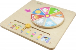 Uz pomoć okretnog kotača i klizača na ploči djeca mogu upoznavati različite vremenske uvjete i što je prikladno odjenuti u tim uvjetima.