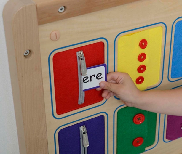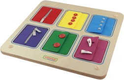 Ova kvalitetna drvena edukativna ploča pruža djeci siguran prostor za vježbu stvarnih mehanizama zakopčavanja. Svaki od 6 horizontalnih džepova predstavlja različitu vrstu zakopčavanja poznatu s jakni, trenirki ili košulja, pa djeca uče vještine koje koriste svaki dan.