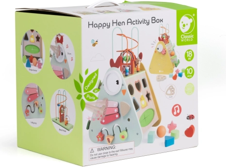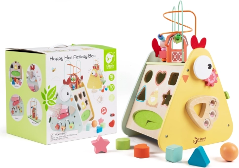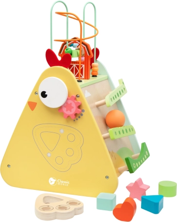 Otkrijte svestranu drvenu montessori kocku 10u1 CLASSIC WORLD koja spaja omiljene dječje aktivnosti u jedno pametno središte igre i učenja. Nudi ksilofon, labirint, bludište s perlicama, zupčanike, sorter za oblike i druge elemente za razvoj fine motorike, koordinacije oko–ruka i kreativnosti. Izrađena od kvalitetnog drva, s netoksičnim bojama i prikladna već od 18 mjeseci.
