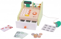 Izrađena od kvalitetnog drva s naglaskom na detalje i sigurnost. Ekološki materijali ugodni su na dodir i izdržljivi za svakodnevnu igru. Set sadrži sve potrebno za potpunu igru — novčanice, kovanice i platnu karticu.