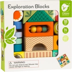 Otkrijte kreativni svijet s drvenim senzornim kockama marke Classic World. Ovaj set od 14 dijelova u Montessori stilu potiče finu motoriku, prostornu percepciju, kreativnost i osnove STEM-a. Šareni oblici s različitim funkcijama pozivaju na istraživačku igru, sortiranje i slaganje, dok netoksične boje i izdržljivo drvo jamče sigurnu igru. Dio seta je i drveni okvir za uredno spremanje.