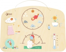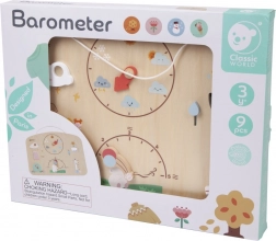 Otkrijte svijet vremena kroz igru! Drvena meteorološka ploča brenda Classic World uči djecu pratiti i namještati temperaturu, vjetar, oborine, dan/noć i opće vremenske uvjete. Izrađena od kvalitetnog drva i obojena netoksičnim bojama, nudi sigurnu i edukativnu zabavu od 3. godine kod kuće i na putovanju.
