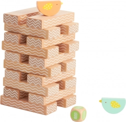 Ova dizajnerska balansirajuća i stohastička igra donosi djeci uzbuđenje i radost suradnje. Cilj je sagraditi stabilnu kulu i pustiti ptičice da „polete“ što više – tko dulje održi ravnotežu, pobjeđuje. Svi dijelovi izrađeni su od kvalitetne bukovine s nježnim uzorcima, ugodni na dodir i izdržljivi za svakodnevnu igru.