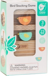 Otkrijte zabavnu drvenu igru brenda Classic World, u kojoj djeca slažu i balansiraju kulu od blokova i simpatičnih ptičica. Set sadrži 20 kocaka, 2 ptičice i igru kocke od bukovine. Igra potiče kreativnost, finu motoriku, koordinaciju oko–ruka i komunikaciju te je idealna za djecu od 3 godine naviše.