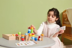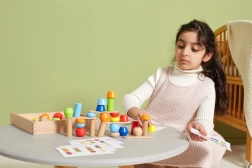 Zahvaljujući ovim drvenim slagalicama, djeca mogu graditi izvanredne kule prema kartama ili vlastitoj mašti. Igračka podržava ravnotežu, praktične vještine, maštu i logičko razmišljanje.
