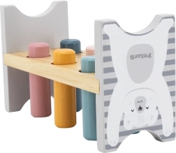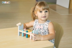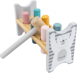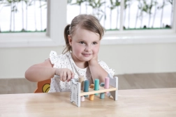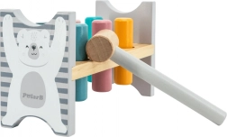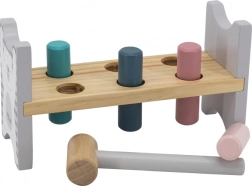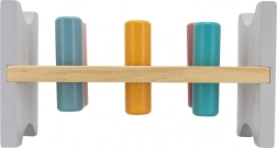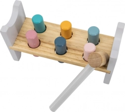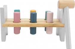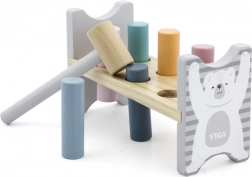 Šarena drvena klupa marke VIGA dizajnirana je da privuče i razvije koordinaciju djece. Glavni zadatak je zabijanje pojedinih klinova kroz otvore, što djecu zabavlja i istodobno trenira njihove motoričke sposobnosti.