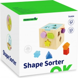 Tooky Toy Drvena kocka za razvrstavanje je idealna igračka za djecu stariju od 12 mjeseci. Ova zabavna i edukativna igračka pomaže razvijati finu motoriku i podržava prepoznavanje oblika i boja. Djeca mogu s veseljem otkrivati kako ispravno smjestiti svaku od 12 šarenih kockica u odgovarajući otvor na kocki.
