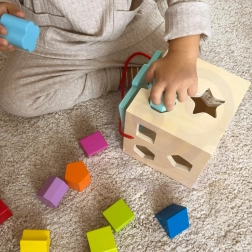Ova kocka pomaže djeci razvijati finu motoriku putem razvrstavanja oblika i postavljanja kocki na odgovarajuća mjesta.