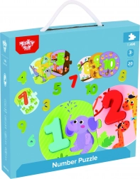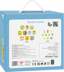 Drvene slagalice Tooky Toy idealna su pomoć za učenje brojeva i razvoj motorike kod djece. Sadrže 20 dijelova - 10 brojeva i 10 kartica s otvorima za umetanje brojeva. Sve je precizno obojano netoksičnim bojama koje su sigurne za djecu i okoliš.