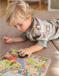 Prikladno od 12 mjeseci. Vježba finu motoriku, koordinaciju oko–ruka i logičko razmišljanje, proširuje rječnik i potiče koncentraciju.