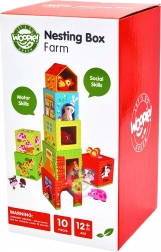 Sklopive kocke WOOPIE GREEN Farma spajaju kreativno slaganje s pametnim učenjem. Svaka kutija predstavlja drugu kućicu od najmanje kokice do najveće krave, ponumerirana je i ilustrirana tako da dijete lako shvati veličine, redoslijed i brojanje. Zahvaljujući otvorima djeca mogu skrivati životinje unutra i stvarati vlastite farmerske priče.