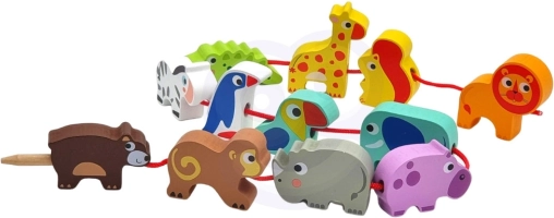 Nizanje drvenih životinjica na špagu jača prstiće, poboljšava hvat te vježba preciznost i koncentraciju.