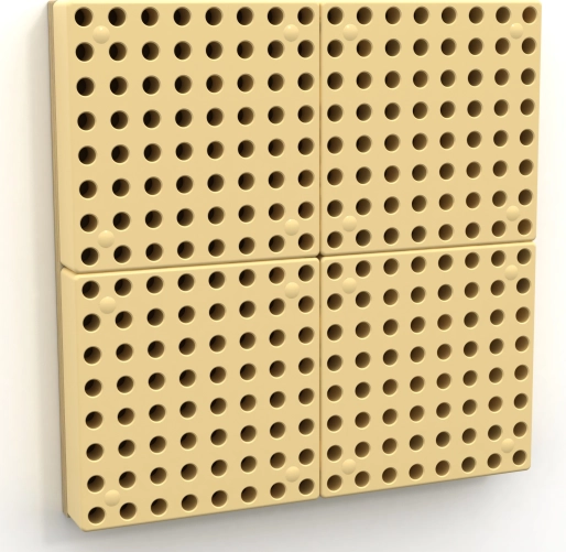 Perforirana ploča od 4 dijela 20 × 20 cm omogućuje umetanje šarenih čepića i stvaranje originalnih uzoraka koji razvijaju finu motoriku i maštu.