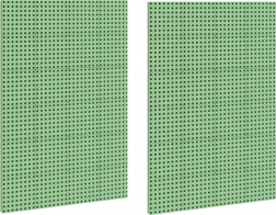 Dva zelena panela s gustom mrežom otvora idealna za pixel‑art i mozaike od klinova – razvoj kreativnosti i fine motorike.