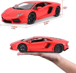Model BBURAGO vjerno dočarava dramatične linije i aerodinamiku vozila LAMBORGHINI Aventador. U mjerilu 1:18 istaknut će se na polici ili u vitrini, a zahvaljujući kvalitetnoj metalnoj izradi djeluje robusno i premium. Atraktivni narančasti lak naglašava ekskluzivan karakter supersportaša.