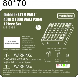 Otkrijte kreativno STEM učenje s vanjskom pločom MASTERKIDZ. Četiri perforirane ploče 40 × 40 cm (4× 20 × 20 cm) omogućuju djeci umetanje klinova i stvaranje uzoraka, spajanje zupčanika, cijevnih sustava i staza za kuglice. Ploča je izrađena od materijala otpornog na vremenske uvjete – ne blijedi, ne puca i idealna je za vrtiće, školska igrališta i kućne vrtove. U pakiranju je montažna ploča za jednostavnu instalaciju bez bušenja izravno u zid.