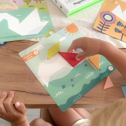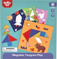 S magnetičnim tangramom TOOKY TOY djeca lako slažu oblike i slike na pripremljenim podlogama. Šareni geometrijski dijelovi prianjaju na podlogu pa je rukovanje jednostavno kod kuće i na putovanjima. Igra potiče maštu, koncentraciju i samostalno rješavanje zadataka.