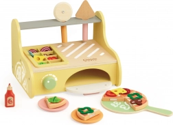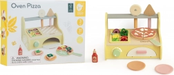 Mala drvena pećnica s vratima i okretnim gumbom uvlači djecu u igru kuhanja. Idealno za prvo “pečenje” i posluživanje pizze.