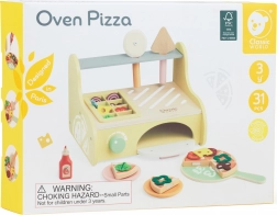 Drvena pizza peć CLASSIC WORLD kreativna je igračka za djecu od 3 godine koja razvija finu motoriku i maštu. U kompletu je “pećnica”, pizza sa skidivim filcanim sastojcima, okretnim upravljačkim gumbom, tanjurićima i priborom za posluživanje. Djeca se u igri kuhara vježbaju u igri uloga, koordinaciji ruku i oka te otkrivaju radost kreativne pripreme pizze.