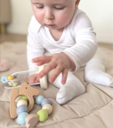 Šareni zečić ispunjen perlicama privlači dječju pažnju i razvija sluh. Idealan je za vježbanje vještina hvatanja.